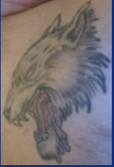 My first tattoo is of a Wolf's Head Tattoo and is located on my back, upper right shoulder! Got it back in September '99 by Sacred Heart Tattoo [Indian Trail location] (North of Atlanta, GA)